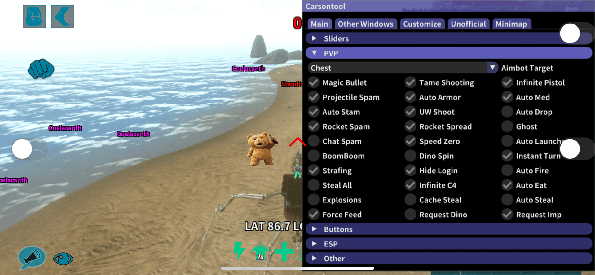 Carsontool is the #1 Mod in ARK: Survival Evolved Mobile, with features which guarantee you will have a powerful advantage over every other player, along with plenty of new experiences in singleplayer and unofficial modes. With over 300 separate features, this mod pushes ARK to it's limits, full of gamebreaking exploits, quality of life changes, increased moderation abilities and powerful capabilities.